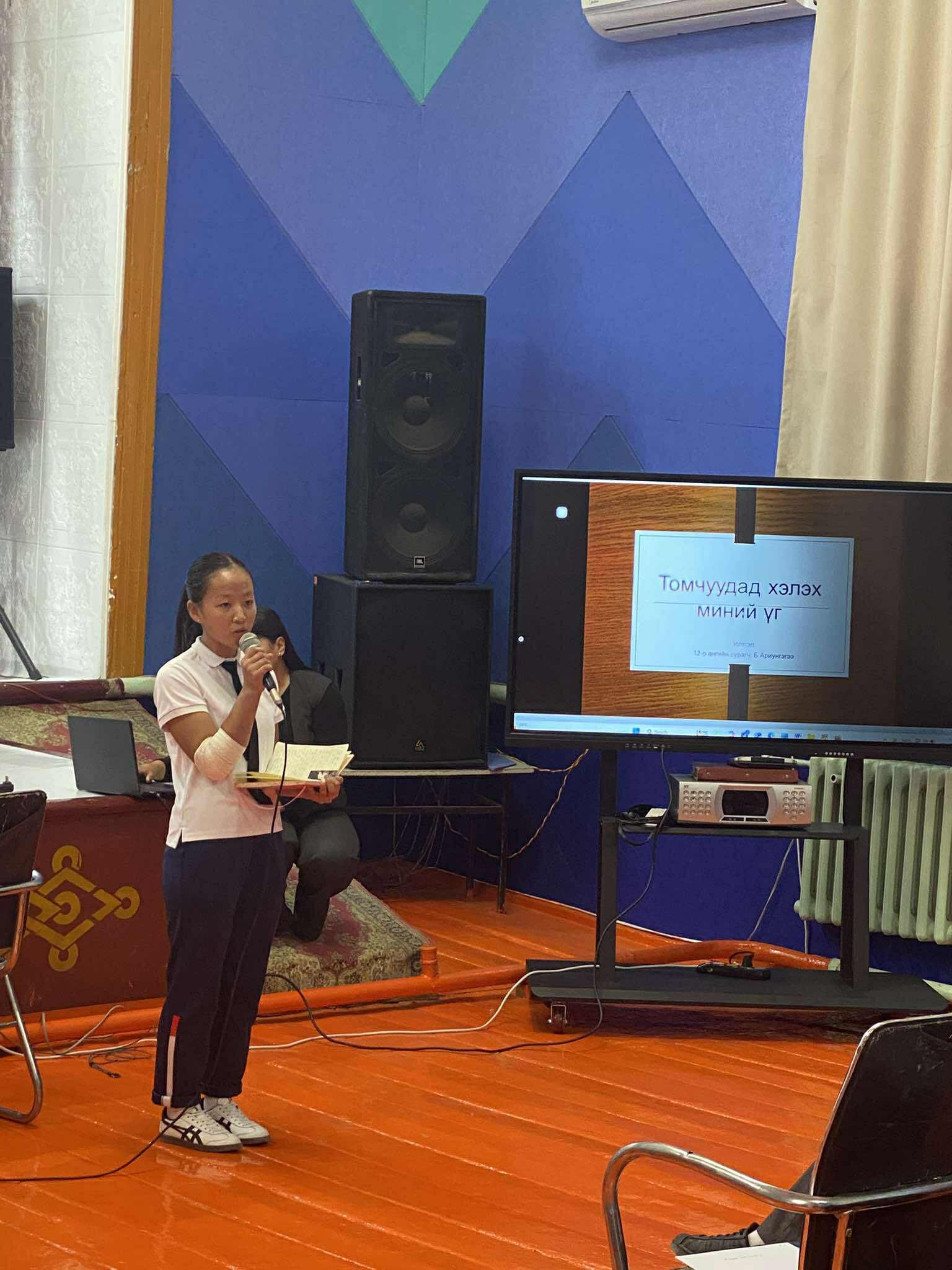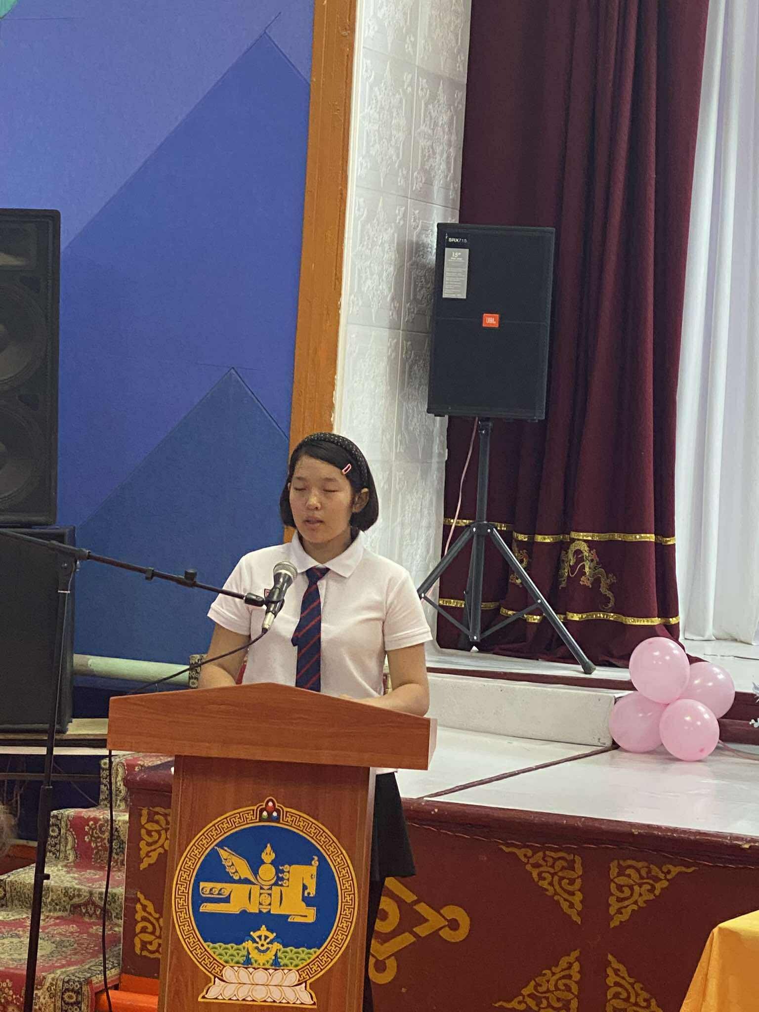 Ахлах бүлгийн сурагчдын дунд зарласан "Томчуудад хүргэх миний үг" илтгэлийн уралдаанд оролцсон 6 илтгэгч охиндоо, дунд бүлгийн сурагчдын дунд зарласан "Миний мөрөөдлийн сум, сургууль" зохион бичлэгийн уралдаанд оролцсон 10 охидод болон бага анги, цэцэрлэгийн бэлтгэл бүлгийн хүүхдүүдэд зарласан "Миний гэр бүлийн бахархал" гар зургийн уралдаанд оролцсон 42 бяцхан хүүхдүүддээ баярлалаа