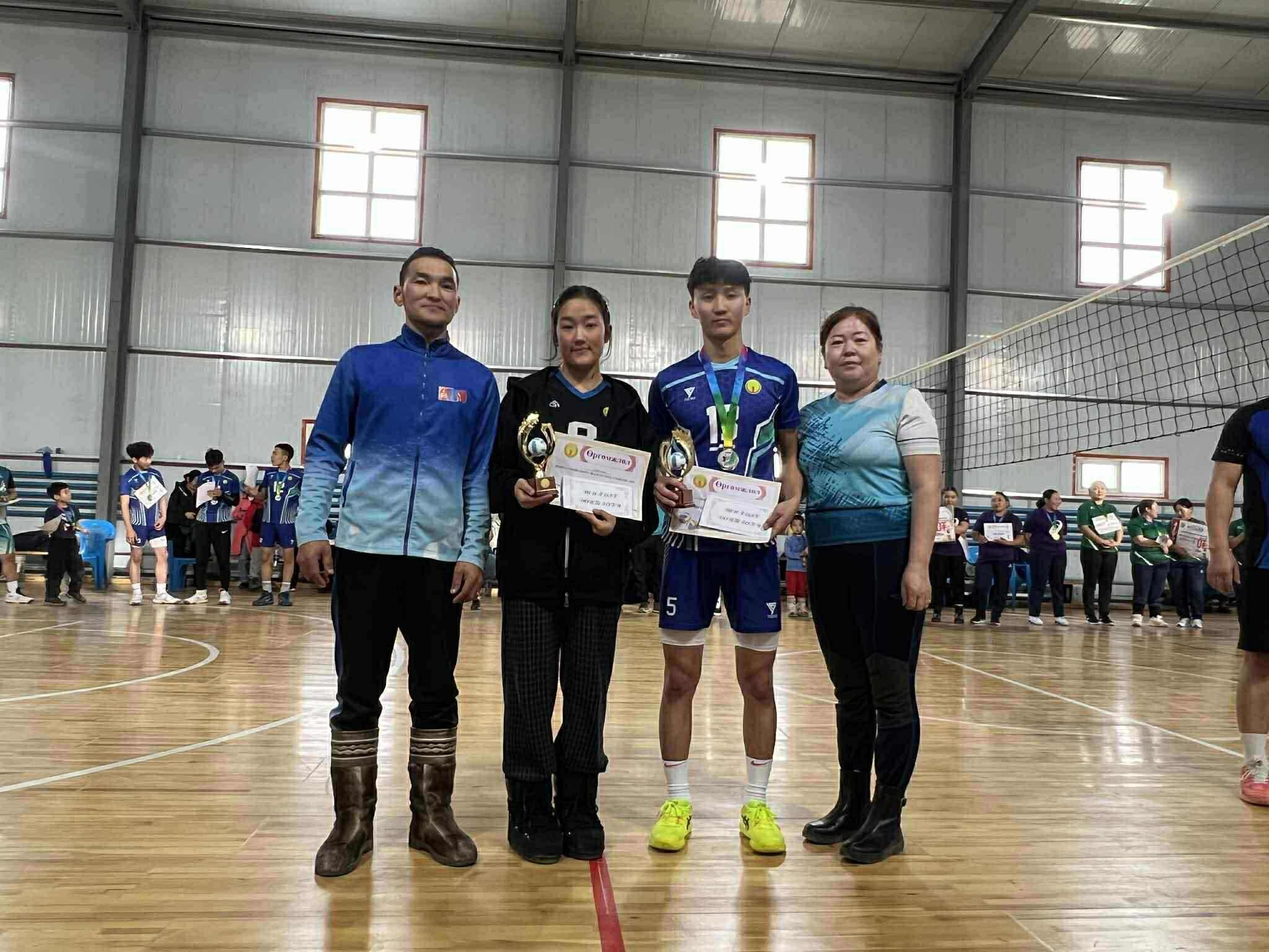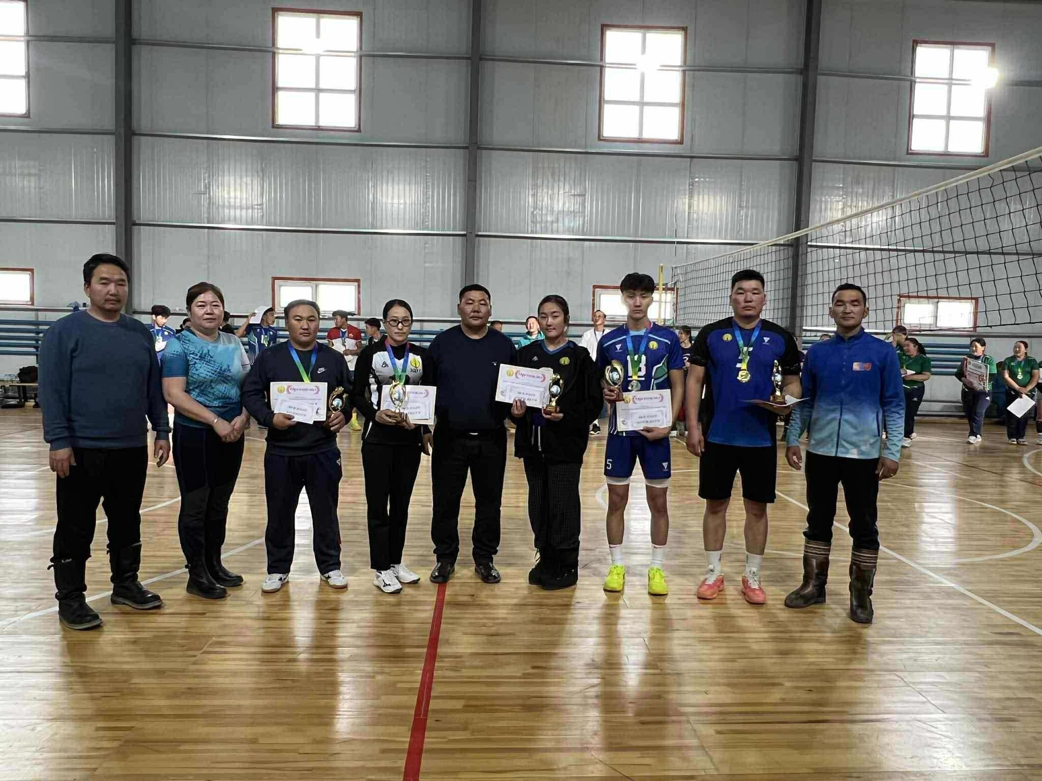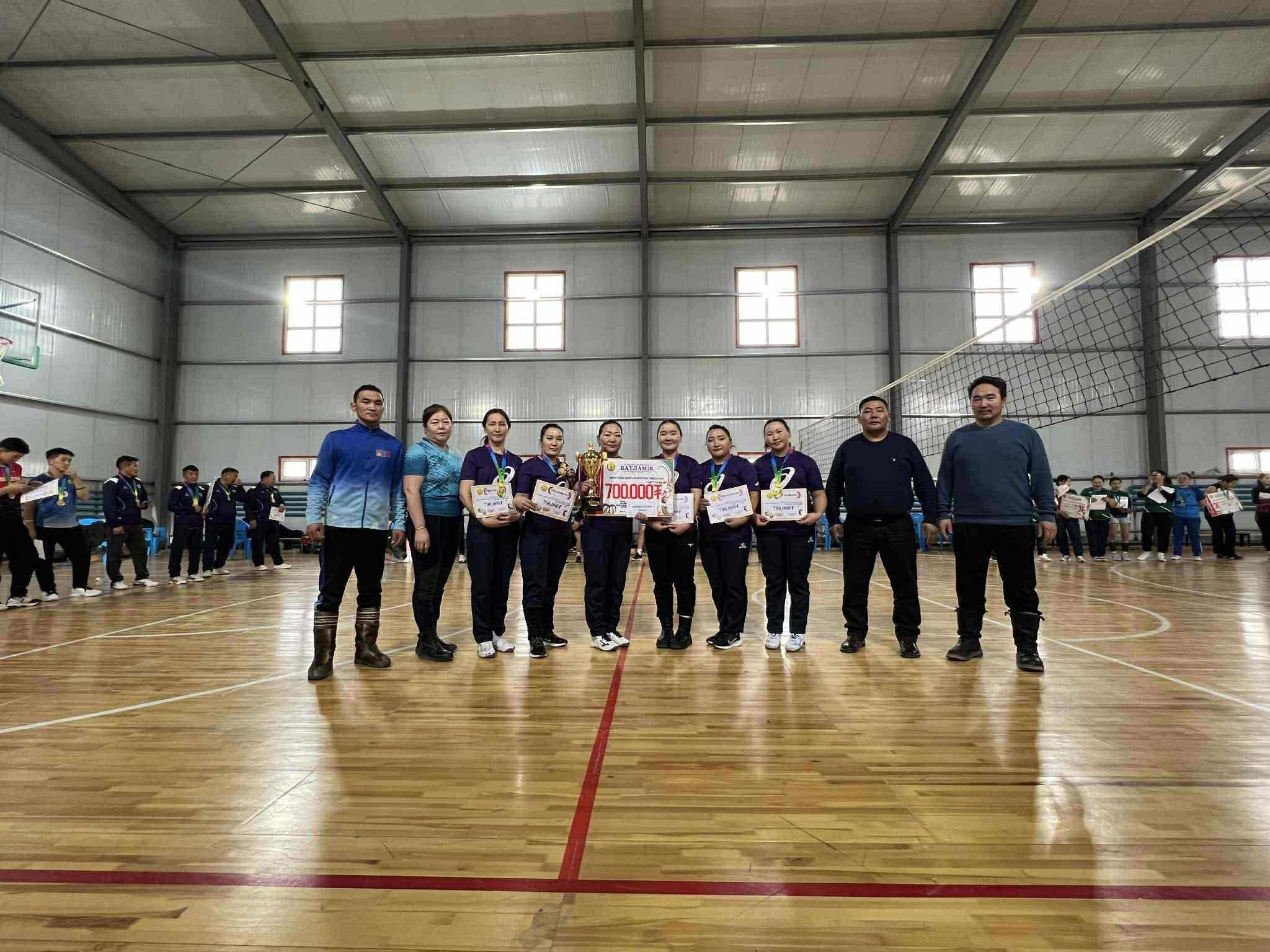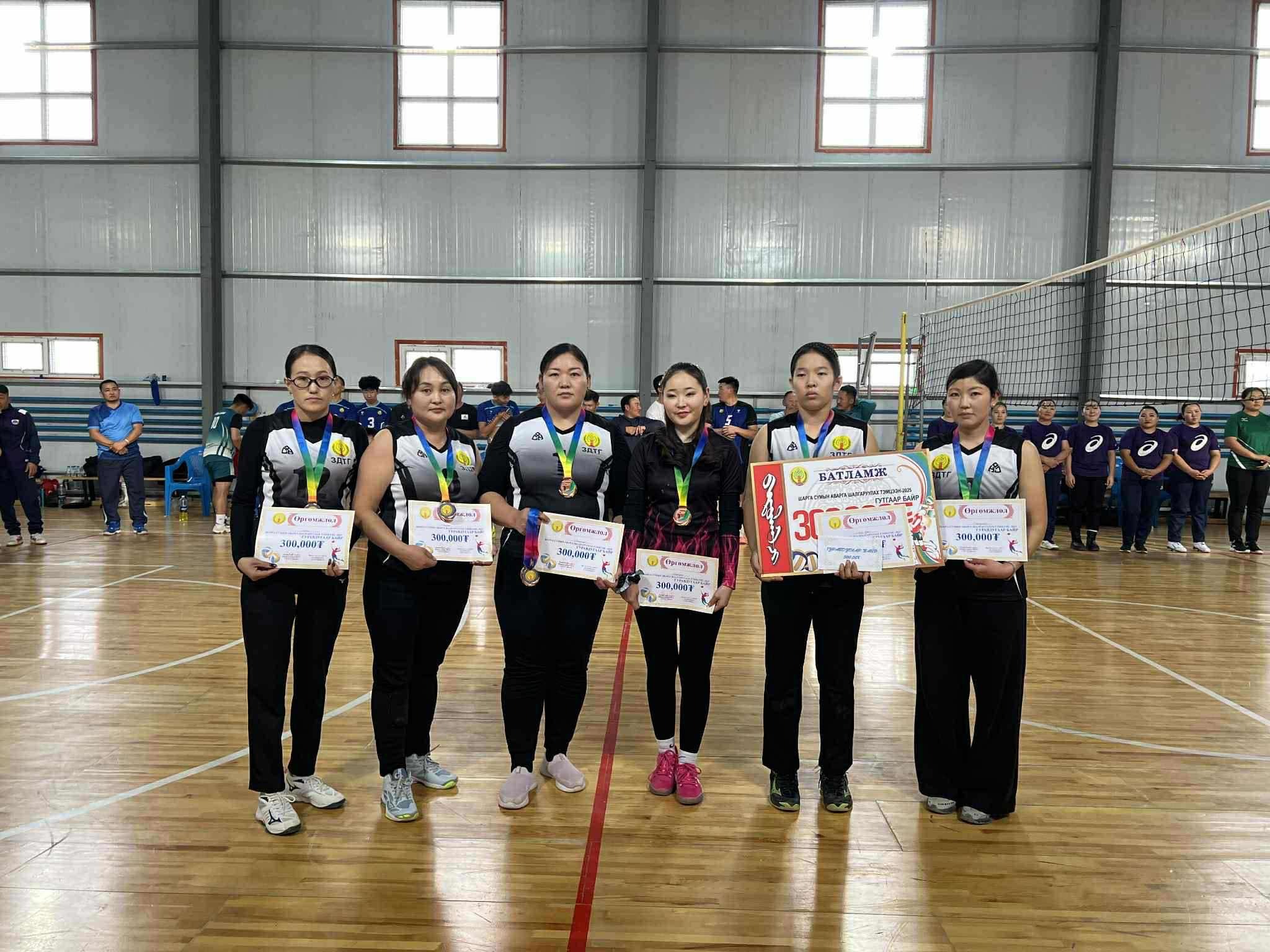 Аймгийн ИТХ-ын төлөөлөгч А.Дэлгэржаргалын дэмжлэгээр сумын ГХУСАЗСЗ-өөс "Сумын 2025 оны волейболын аварга шалгаруулах" тэмцээнийг 2025.11.29-30-ны өдрүүдэд зохион байгуулж, нийтдээ 16 багийн 120 гаруй тамирчид оролцсоноос эрэгтэй төрөлд Б.Саруулбуян ахлагчтай Баянгол багийн "Агар галдай" баг, эмэгтэйд Л.Ууганчимэг ахлагчтай ЕБС-ийн II баг тэргүүн байрт тус тус шалгарч, тус бүр шилжин явах цом, өргөмжлөл 700000 ₮-ний эзэн боллоо. Дэд байрт О.Амартүвшин ахлагчтай Баянгол багийн "Зэрэглээт Шарга" баг, эмэгтэйд ЕБС-ийн Б.Болормаа ахлагчтай I баг тус тус шалгарч, тус бүр өргөмжлөл 500000 ₮-өөр, Гутгаар байрт Э.Алтайбаатар ахлагчтай ЕБС-ийн эрэгтэй баг, С.Даваа ахлагчтай ЗДТГ-ын эмэгтэй баг тус тус шалгарч, баг тус бүр өргөмжлөл 300000 ₮-ий шагнал хүртлээ. Тэмцээний Шилдэг тэгш тоглогчоор Б.Тайванбаатар, М.Жаргалтуяа нар, Шилдэг довтлогчоор Б.Ариунболд, Л.Гэрэлцэцэг нар, Шилдэг холбогчоор Б.Түвшинтөгс, Г.Мичидмаа нар шалгарсан байна.Идэвхтэй оролцсон 4 багийн ард иргэддээ талархал дэвшүүлж, цаашдын ажил үйлсэд амжилтыг ерөөе. Өндөр шагналын сантай тэмцээнийг ивээн тэтгэсэн аймгийн Хурлын төлөөлөгчдөө баярласнаа илэрхийлж, ажил амьдралд нь сайн сайхныг хүсье.